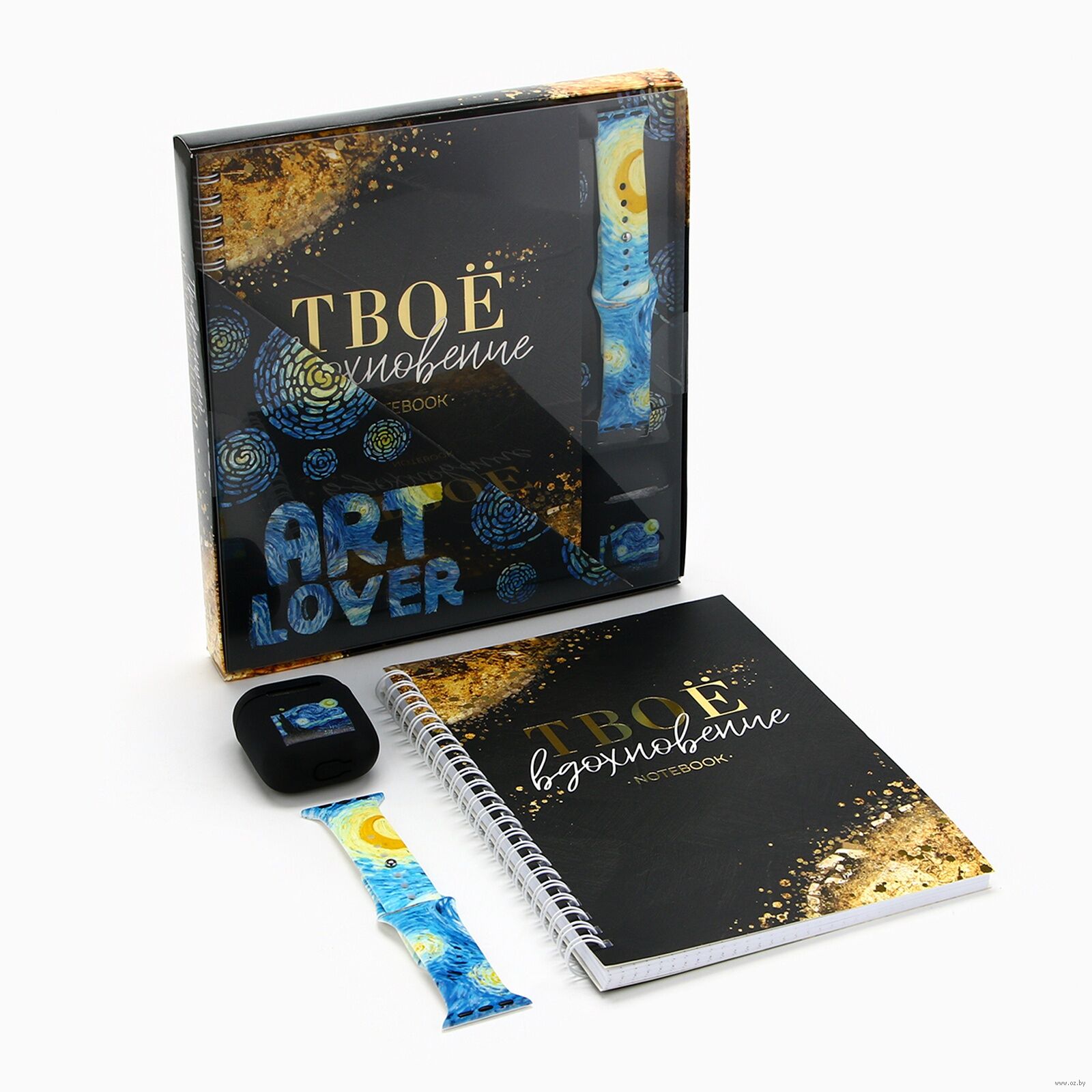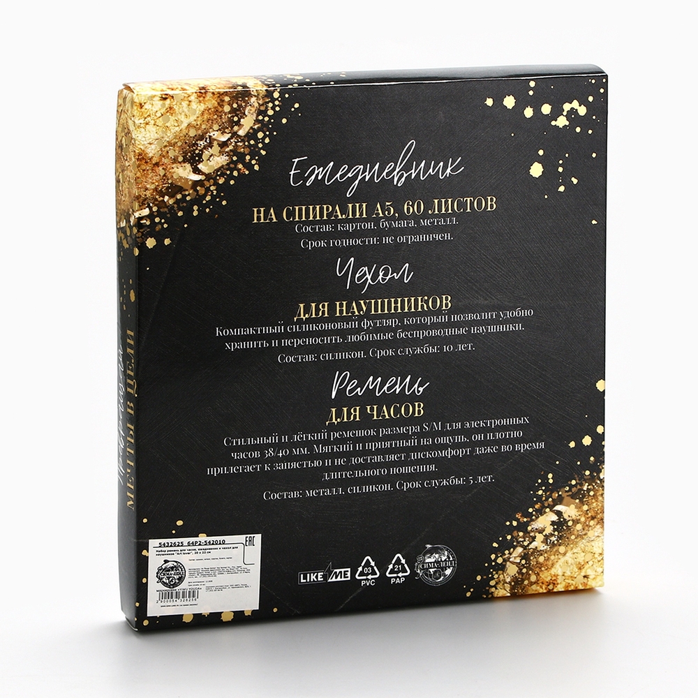 Подарочный набор с ежедневником, ремнём для часов и чехлом для наушников пойдет деловым людям, которые желают всегда оставаться на связи и держать всё под контролем.