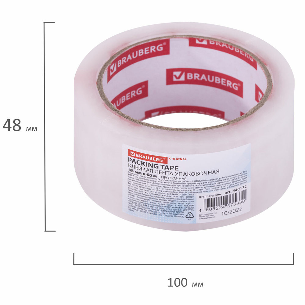 Упаковочная клейкая лентаBrauberg Original активно используется в торговле, промышленности, быту и подходит для оперативной упаковки с помощью диспенсера или вручную. Отличается высокой адгезией клея (прилипанием к поверхности) и стойкостью к разрыву.