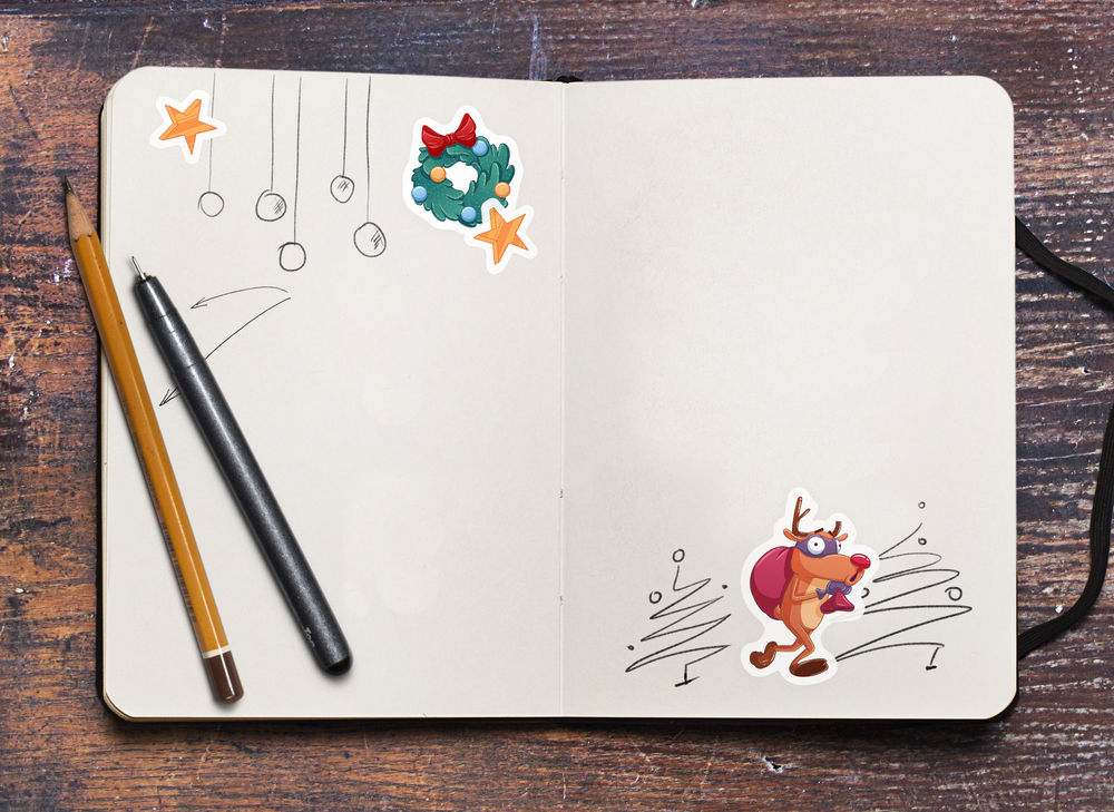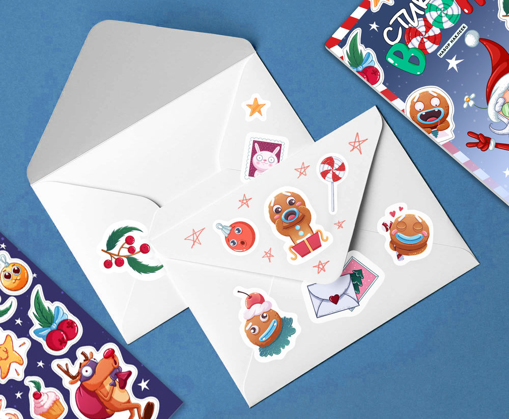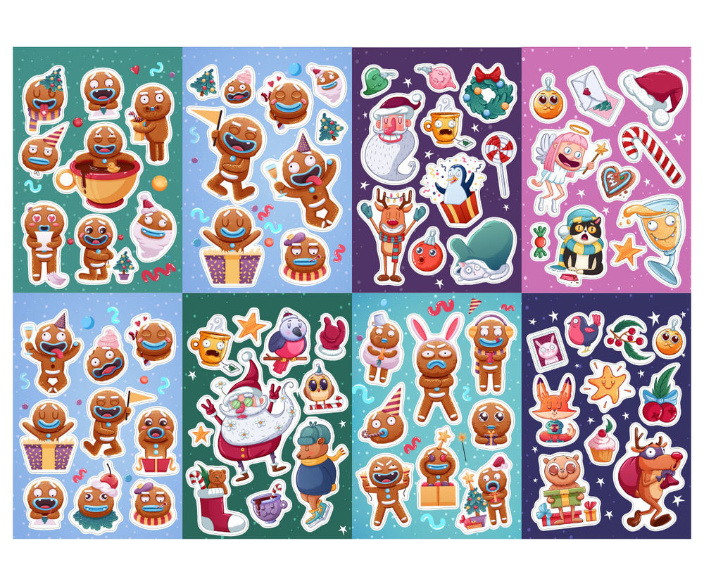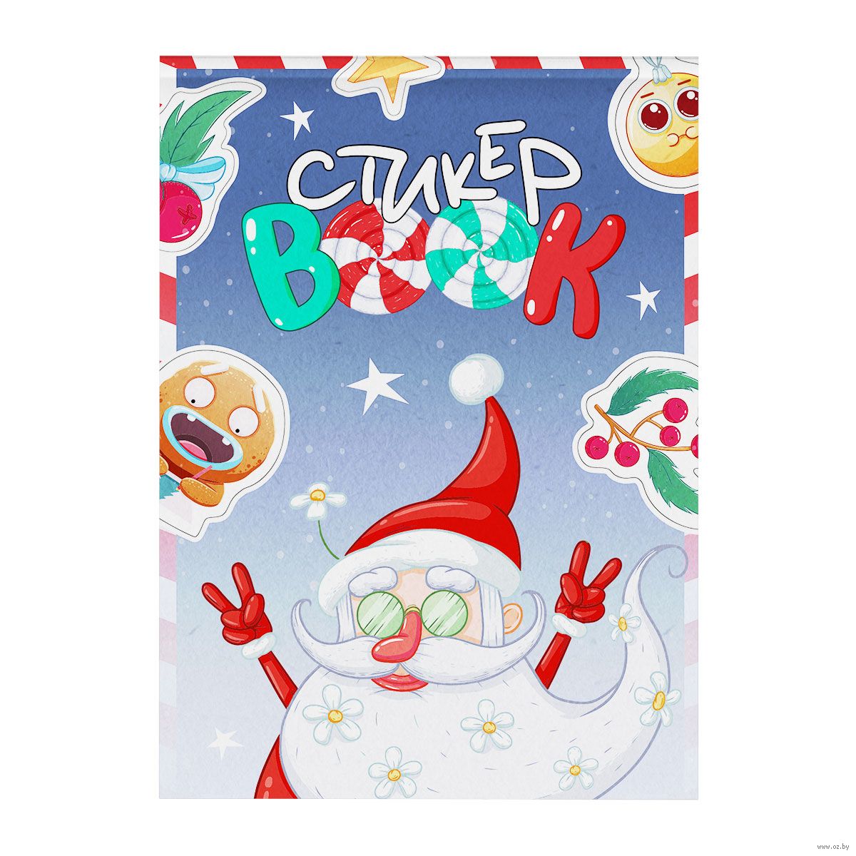 Набор тематических новогодних наклеек, собранных в стикер-бук