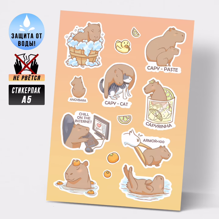 Замечательные наклейки, сделаны качественно и красиво. Имениннику очень понравилась открытка, в особенности сами капибары. В общем советую!!