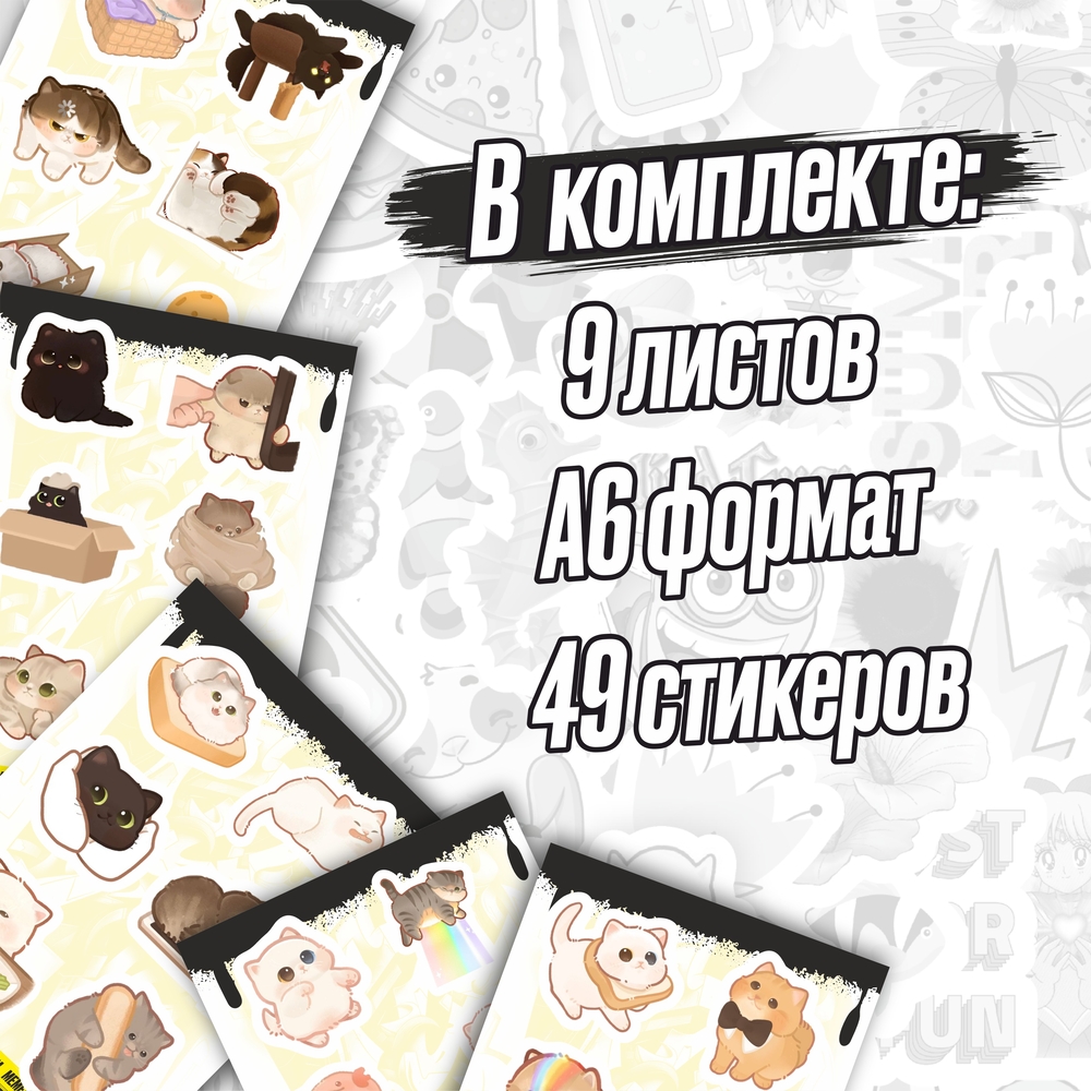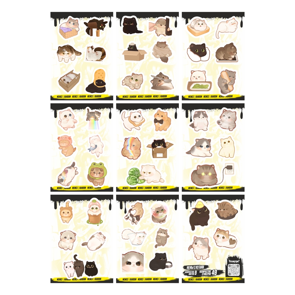 Набор виниловых наклеек "Кавайные коты. Мемы"