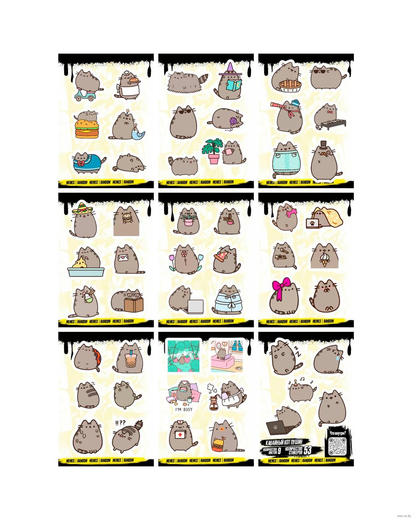 Набор виниловых наклеек "Кавайный кот Пушин"