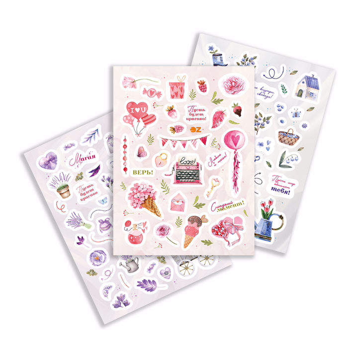 Набор наклеек поможет оформить любимый ежедневник, ноутбук или украсить скучную тетрадь. Каждая наклейка прорезана по контуру и легко отделяется от листа.