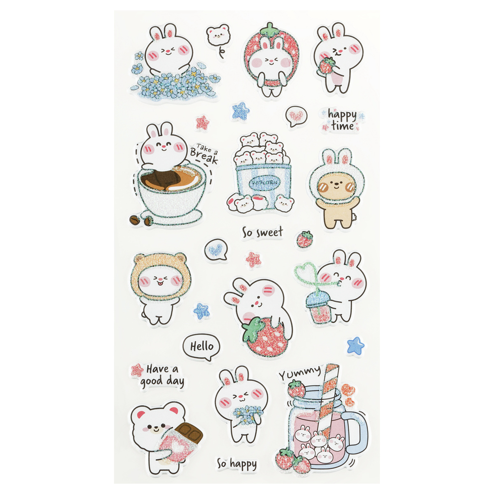 Объёмные матовые наклейки "Bubble bunny" из вспененных полимеров подходят для декорирования обложек, канцелярии, техники, открыток, поделок.