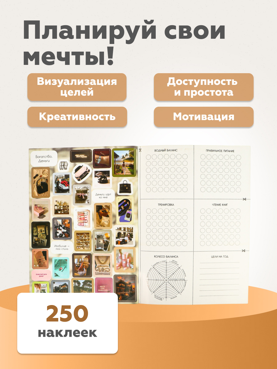 Этот стикербук станет не только инструментом для визуализации желаний, но и красивым, вдохновляющим подарком для себя или близкого человека.