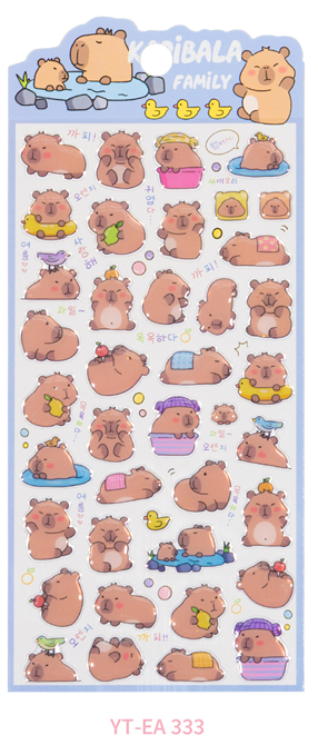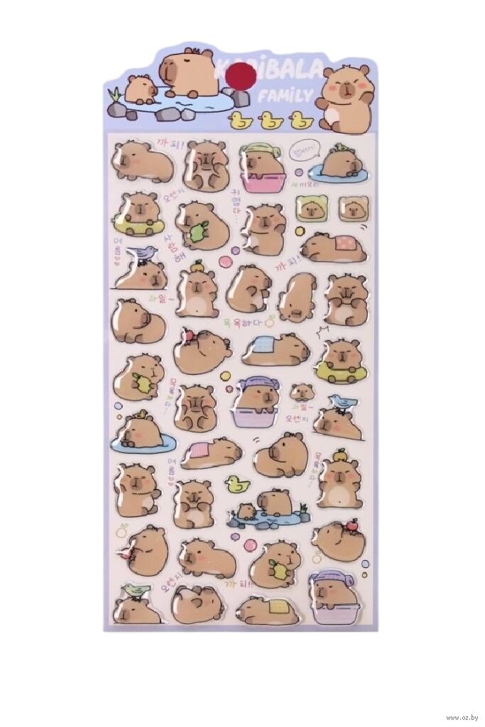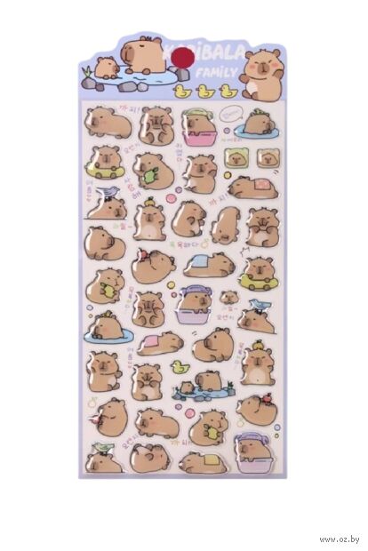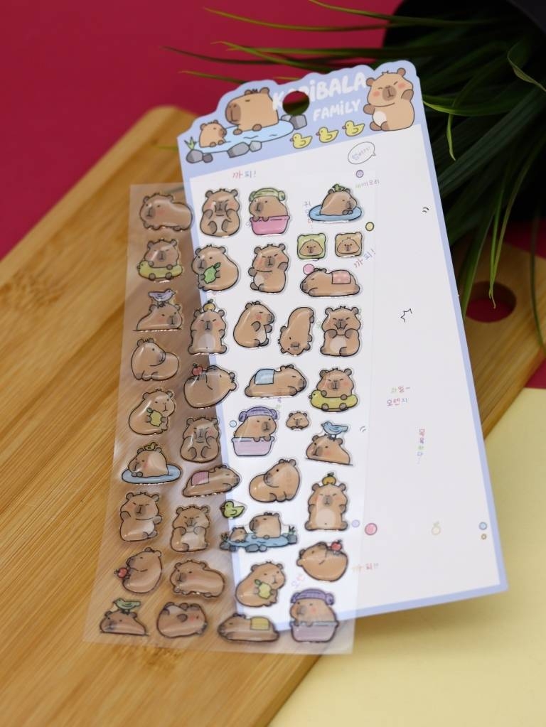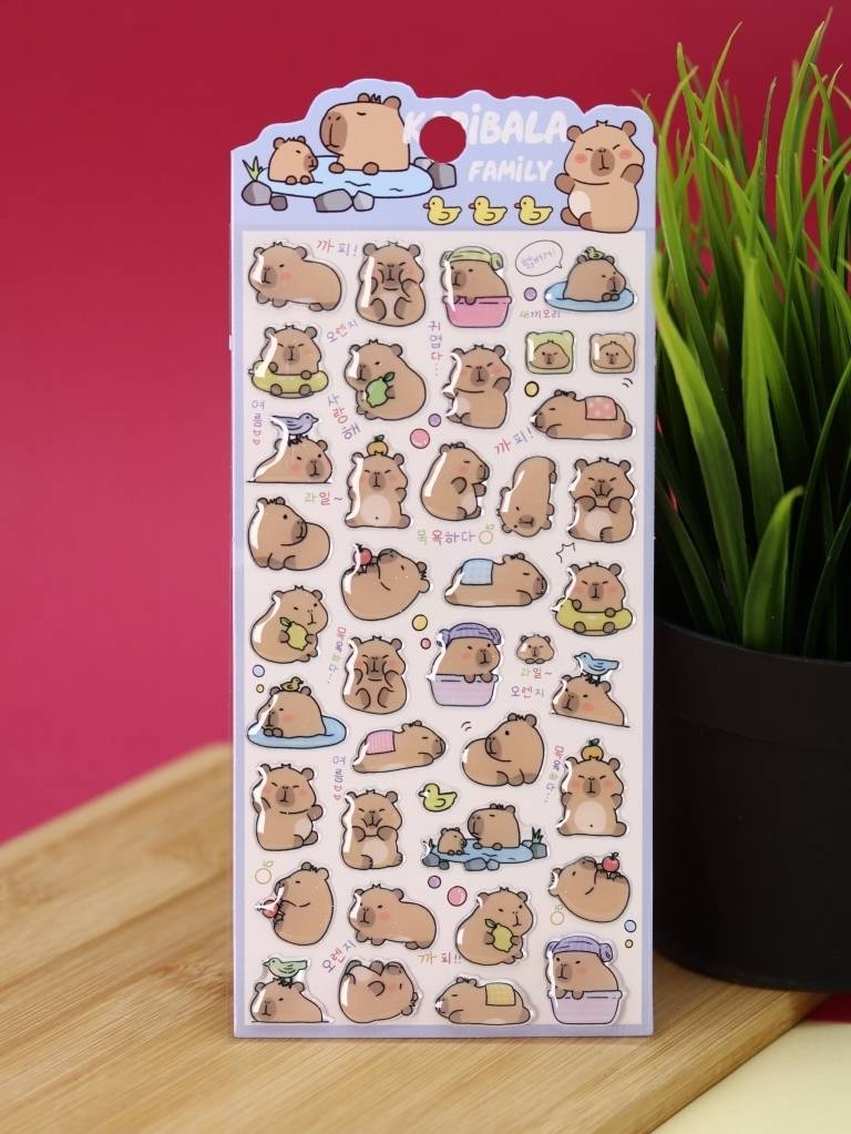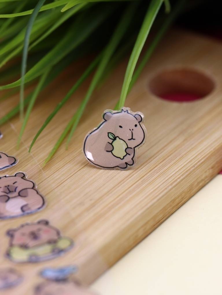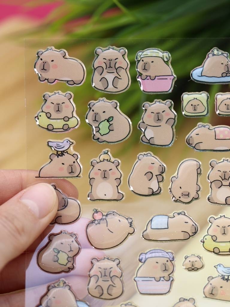 Наклейки с капибарами – это очаровательный набор для тех, кто любит милый и необычный стиль. Весёлые капибары в разных образах и ситуациях добавят уюта и позитива повседневным вещам.