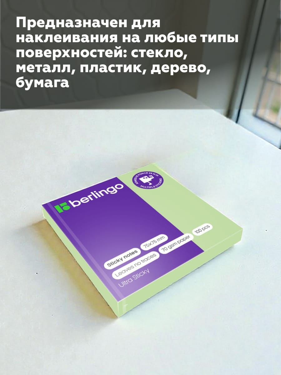Блок самоклеящейся бумаги для заметок. Праймер слой, удерживающий клей при переклеивании, позволяет не оставлять следов на поверхности и многократно использовать лист. Специальное покрытие, предотвращающее закручивание, оптимизированное для комфортного письма. Идеальны для наклеивания на различные типы поверхностей. Изготовлен из бумаги плотностью 75 г/м2.