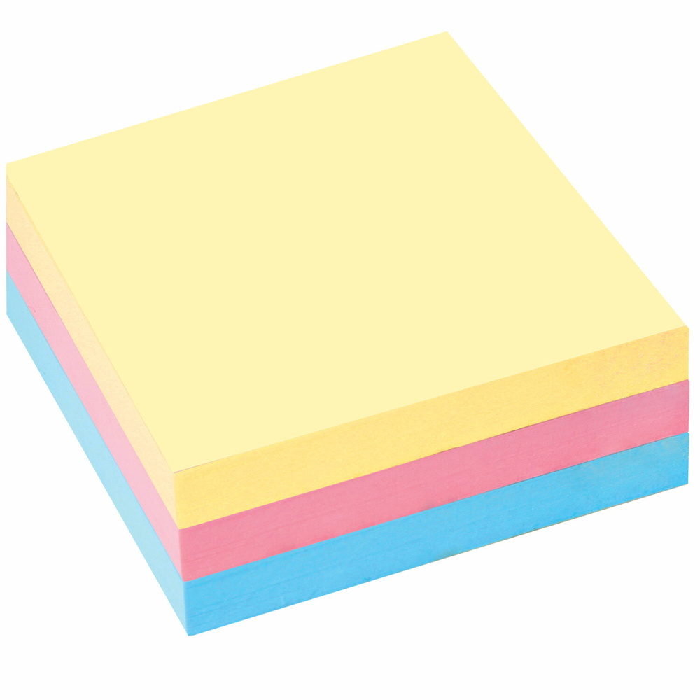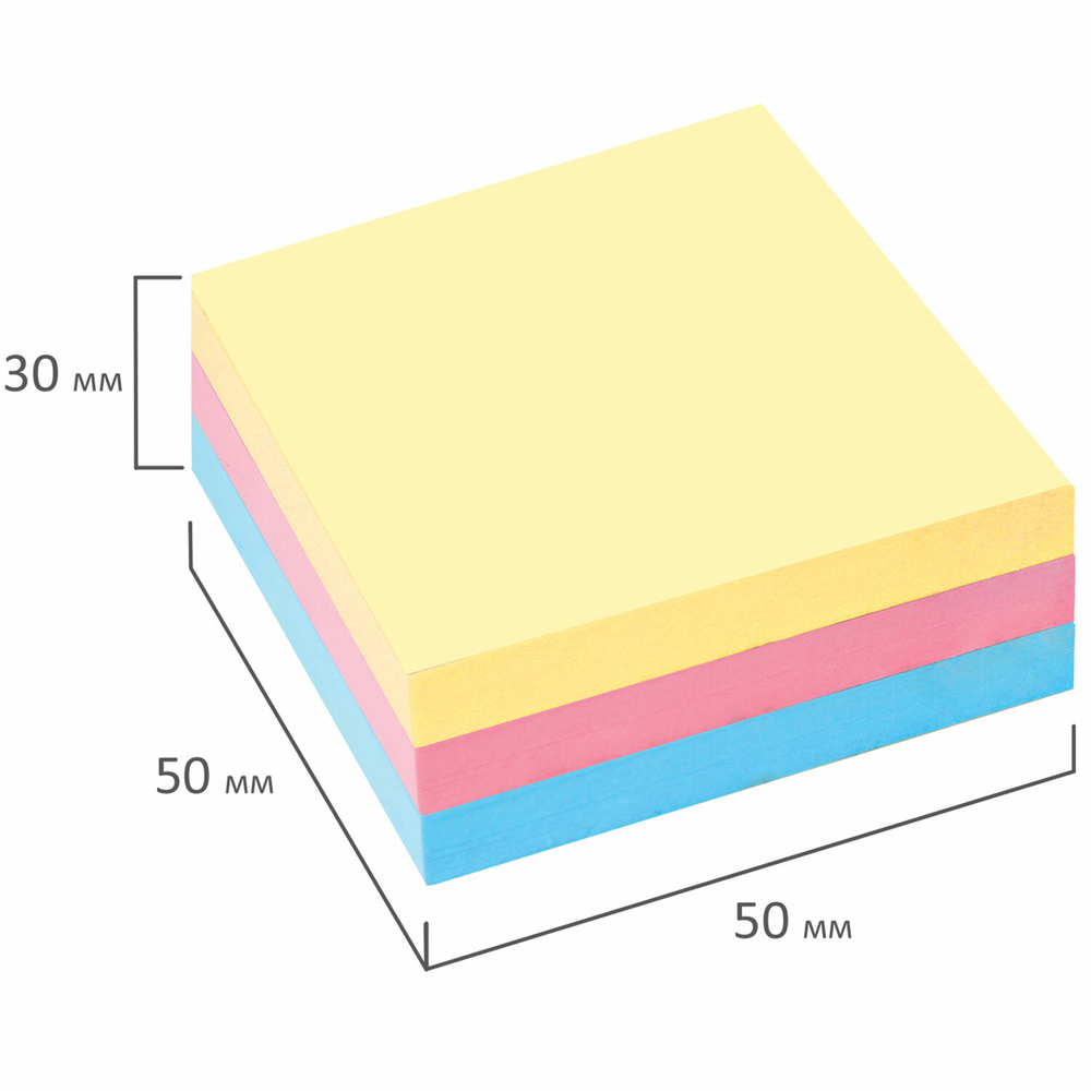 Стикеры 3 пастельных цветов (желтый, розовый, зеленый) в форме куба 50х50 мм состоят из 300 листов. Плотность бумаги составляет 75 г/м2. Клейкий слой – 22 Н/м. Легко клеятся к любой поверхности. Не оставляют следов. Упакованы в полиэтиленовую пленку.