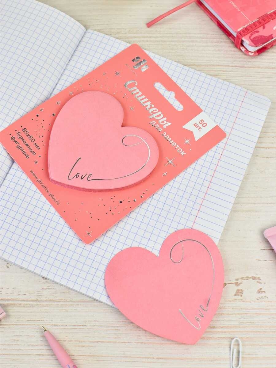 Стикеры для заметок "Сердце розовое" (85х80 мм; 50 листов)