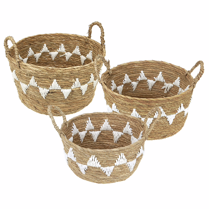Набор состоит из 3 плетеных корзин разного размера: 31х18 см, 27х15 см и 22х12 см.