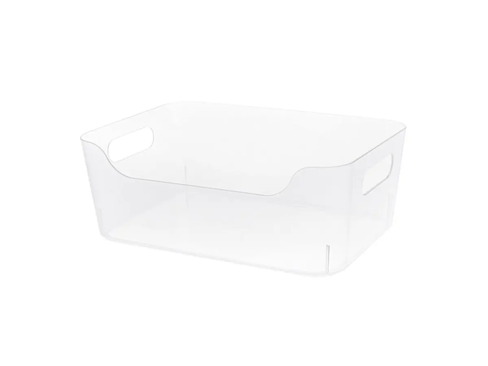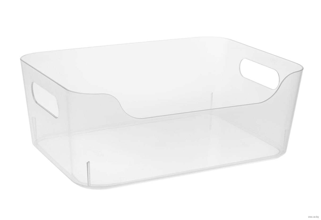 Благодаря боковым ручкам корзинки удобно переносить или снимать с полки. Прозрачные стенки позволяют видеть, что именно хранится в корзинке. Легко моется, в том числе в посудомойке, или протирается влажной тканью.
