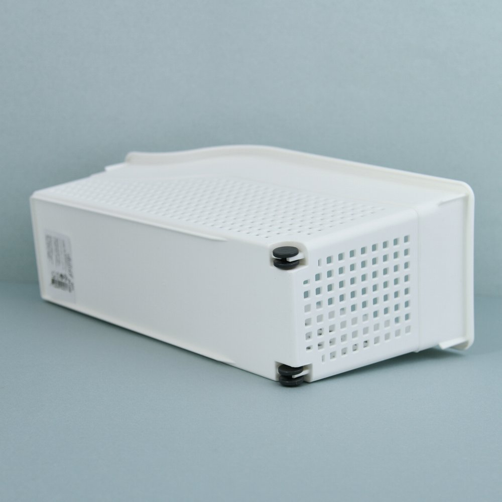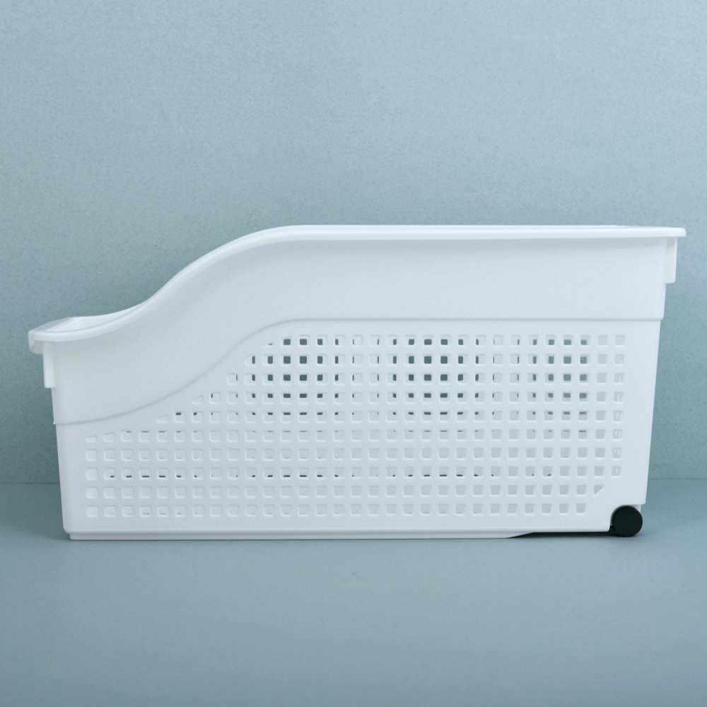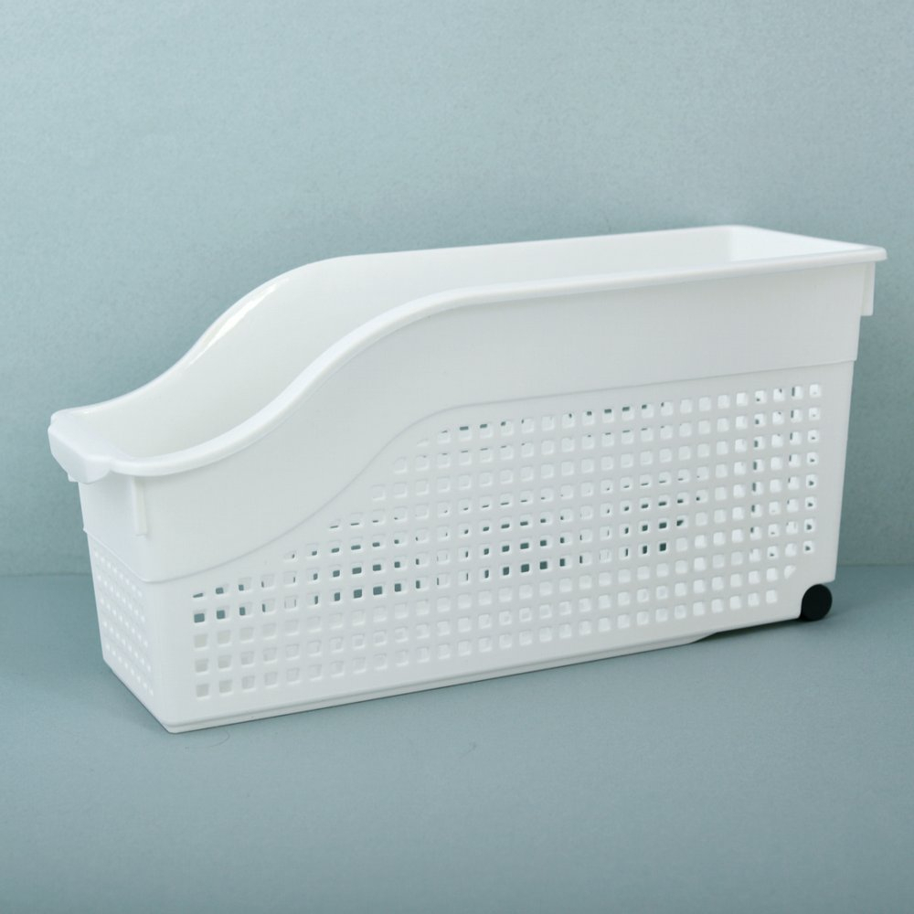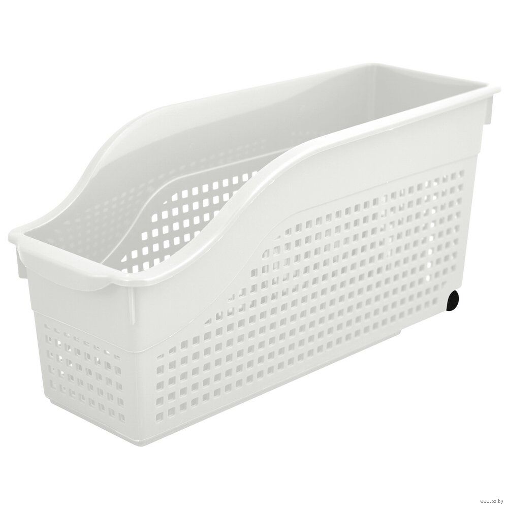 Для удобства выкатывания контейнер оснащён колёсиками и ручкой. Стенки органайзера имеют отверстия для вентиляции, дно – сплошное. Лаконичный дизайн отлично впишется в любой интерьер.