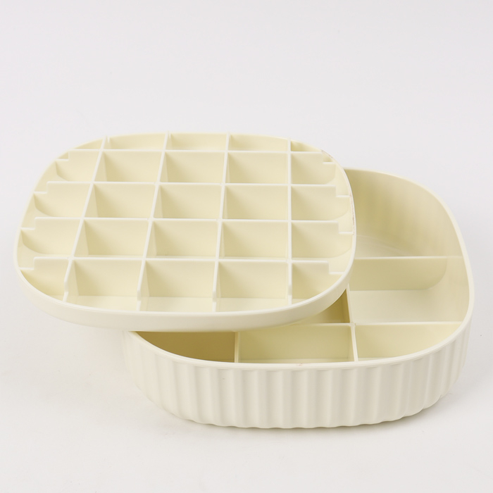 Внутри, основание разделено на 9 отсеков + дополнительно 1 вкладыш с 25 отсеками, благодаря которым каждый предмет имеет собственное место.