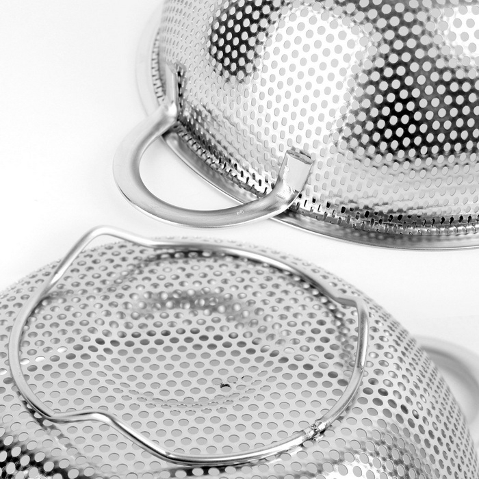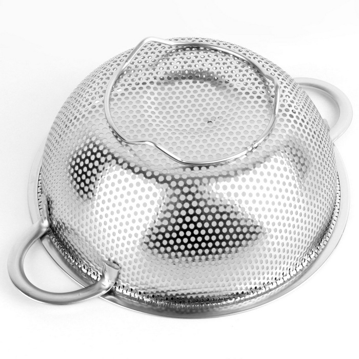 Дуршлаг на ножках предназначен для отделения твердых продуктов от жидкости, для сцеживания творожной сыворотки. Для мытья ягод, грибов, фруктов и овощей.