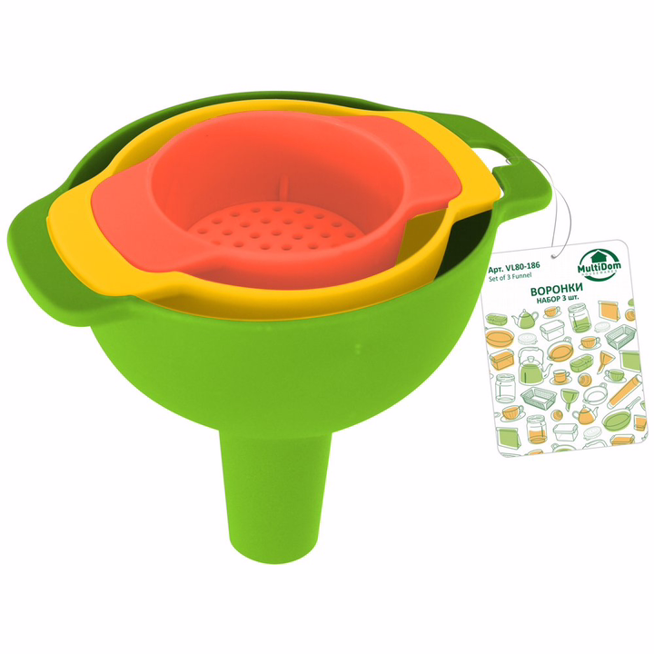 Набор воронок позволяет подобрать нужный размер для конкретной посуды – для ёмкостей с узким или широким горлышком, для переливания больших и маленьких объёмов жидкостей.