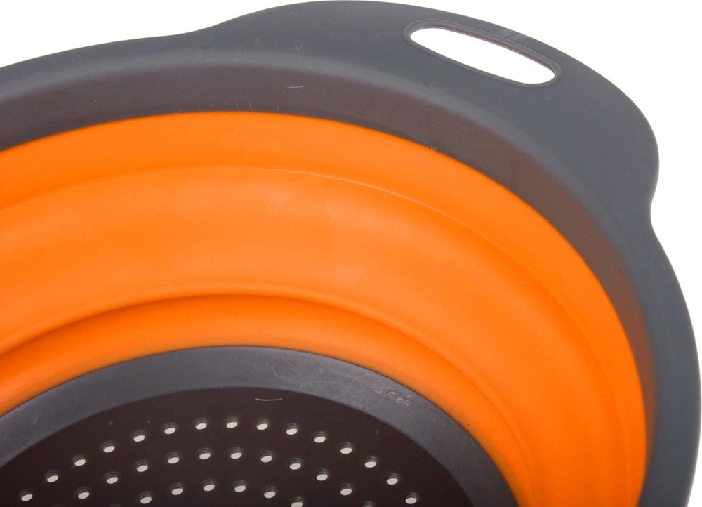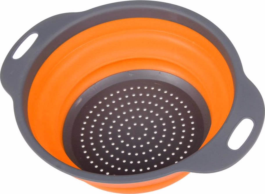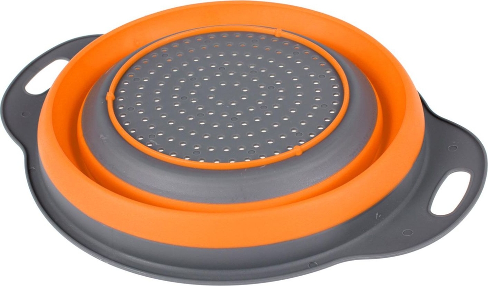 Оригинальный складной дуршлаг дополнит любую кухню. Он выполнен из прочных и качественных материалов: термопластичной резины и полипропилена.