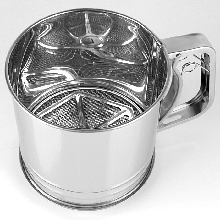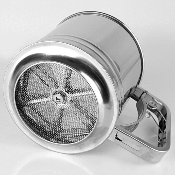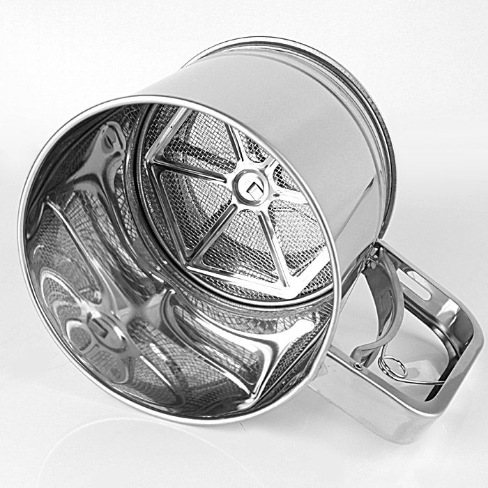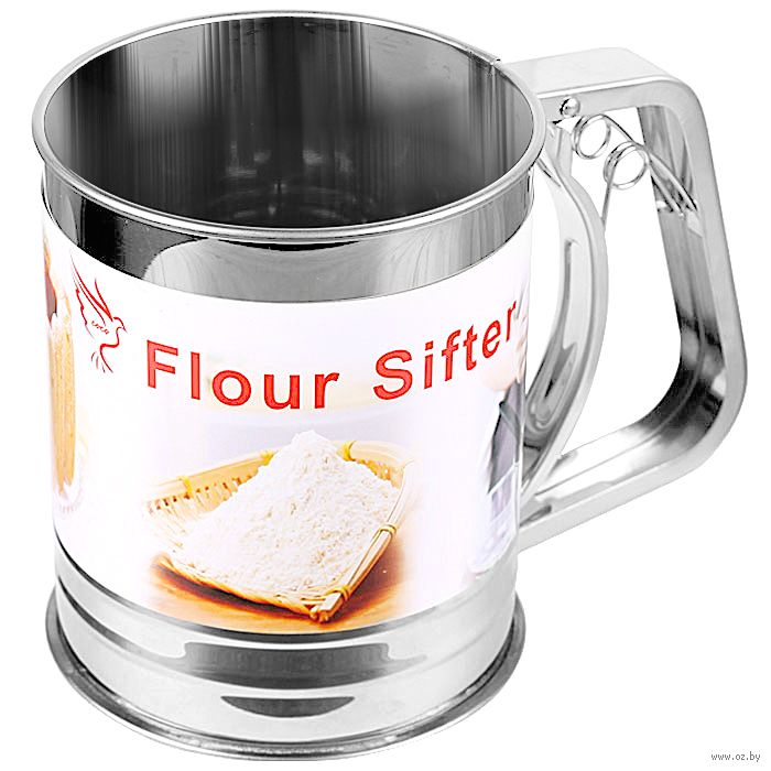 Кружка-сито является хорошим помощником для просеивания муки и других молотых продуктов.