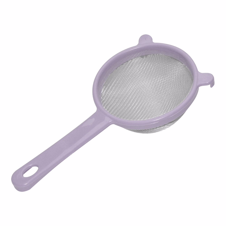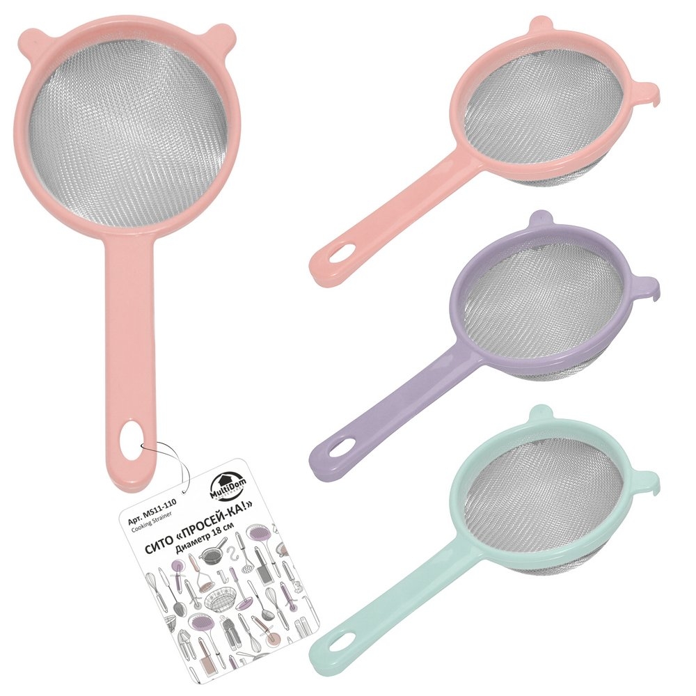 Сетка изготовлена из алюминия, ободок и ручка из пластмассы (полипропилен). На ручке есть отверстие для хранения сита на крючке.