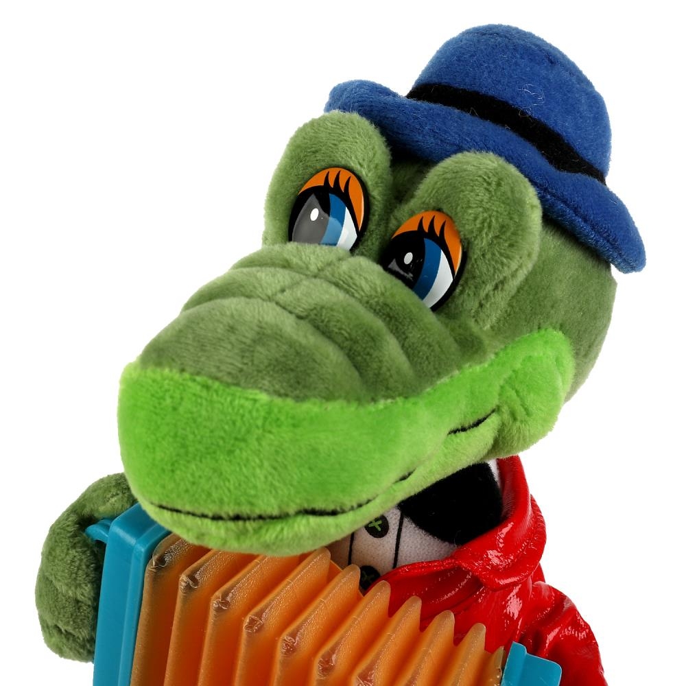 Мягкая озвученная игрушка "Крокодил Гена с аккордеоном" – прекрасный подарок для всех поклонников известного мультфильма студии "Союзмультфильм".