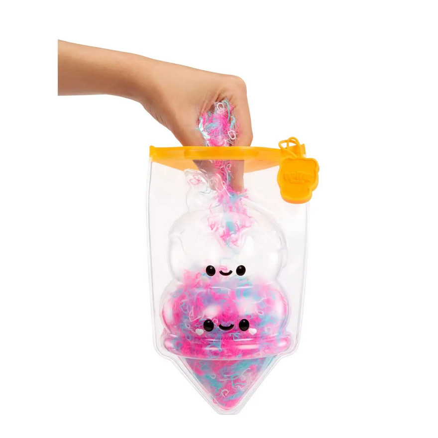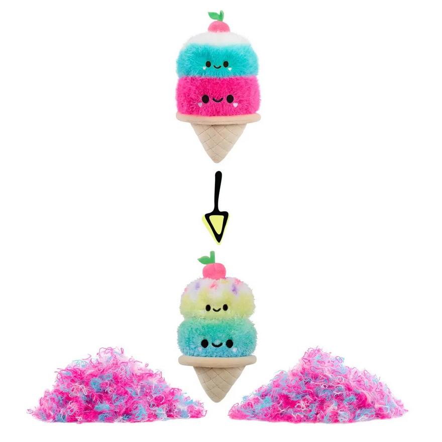 Познакомься с новым очаровательным персонажем – это Мороженое Рожок по имени Скуп! Выщипай верхний слой ворса и узнай, какой цвет прячется внутри. Смотри, Мороженое Рожок Скуп теперь лимонно-голубого цвета!