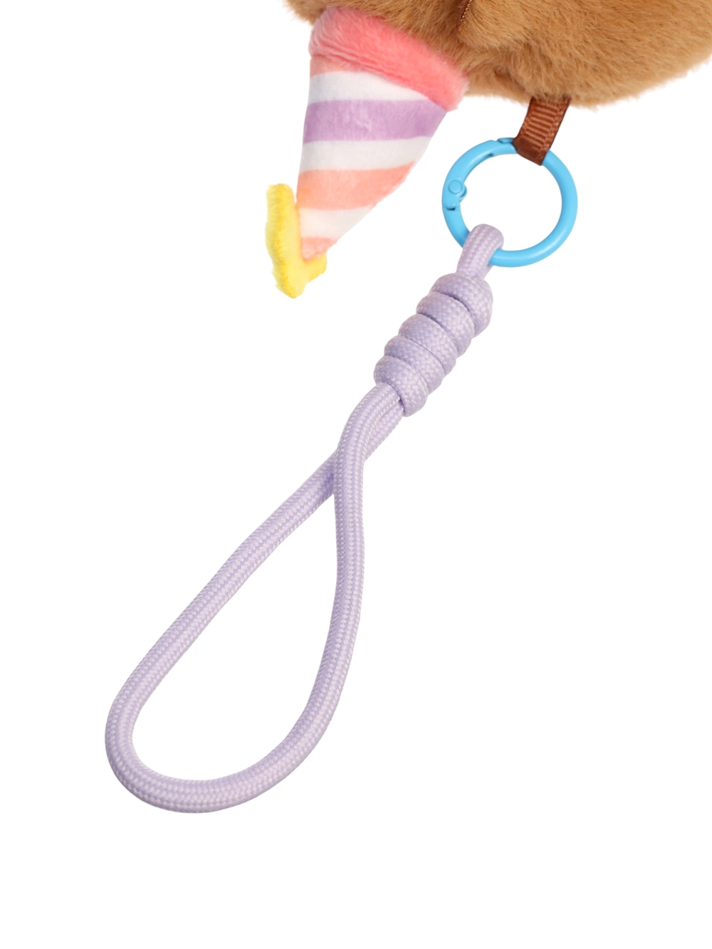 Сиреневый подвес подчёркивает милый образ и позволяет легко закрепить игрушку в любом удобном месте.