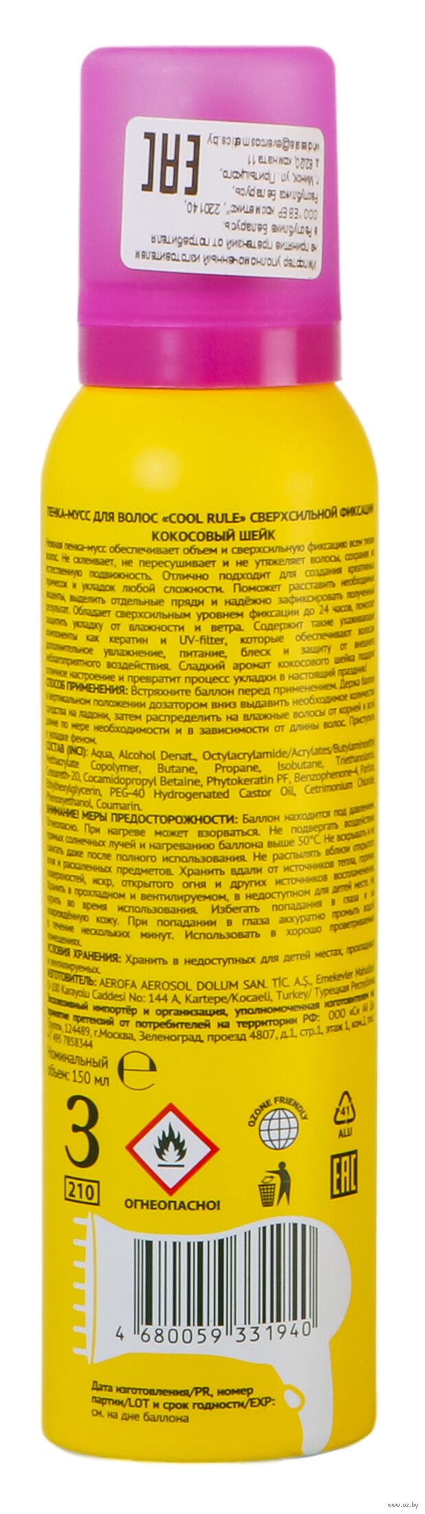 Пенка-мусс для укладки волос "Кокосовый Шейк" сверхсильной фиксации (150 мл)