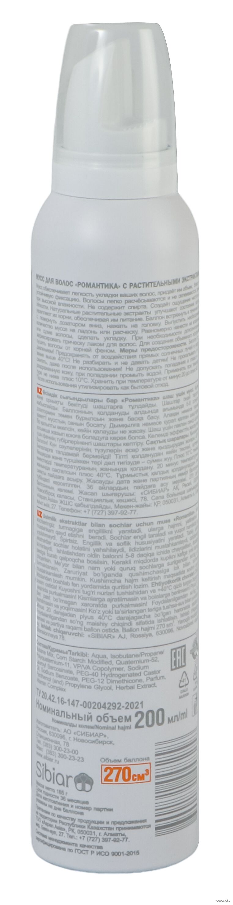 Мусс для укладки волос "Романтика" сильной фиксации (200 мл)