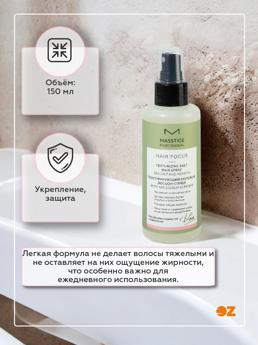 Текстурирующий солевой лосьон-спрей для волос "Морская соль и кератин" (150 мл)
