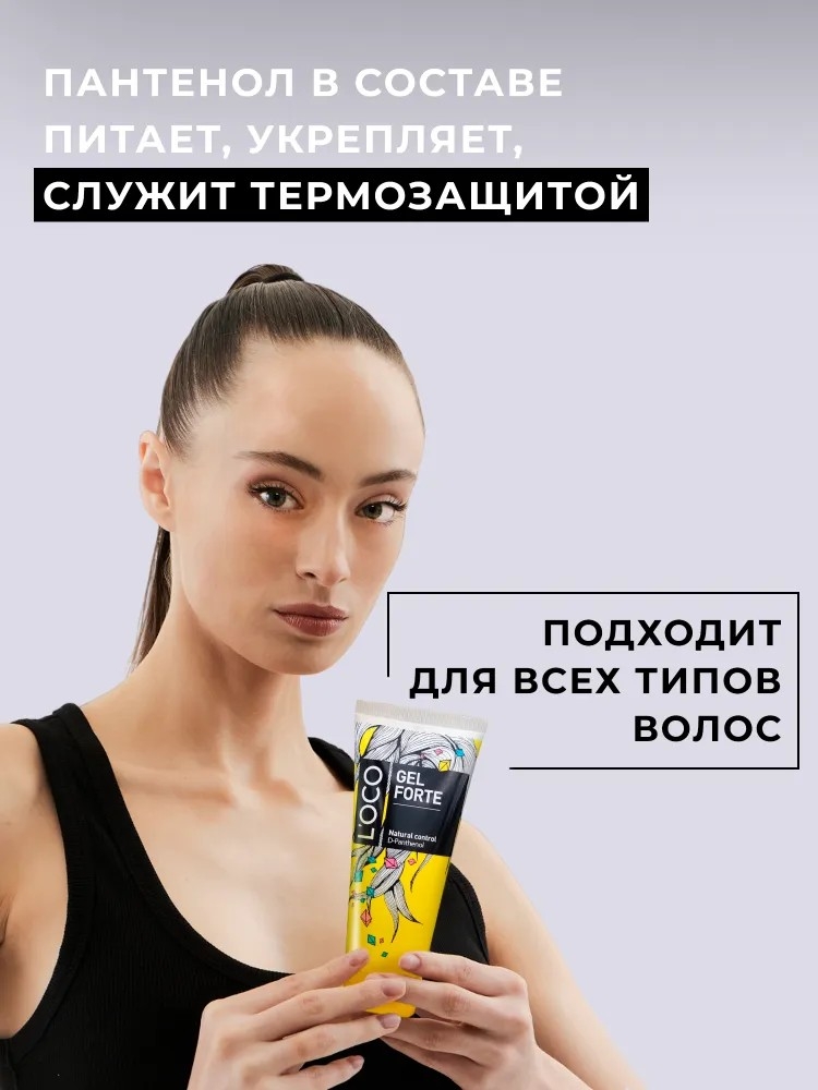 Гель для укладки Loco с пантенолом обеспечивает естественный эффект с сохранением эластичности, подвижности локонов.