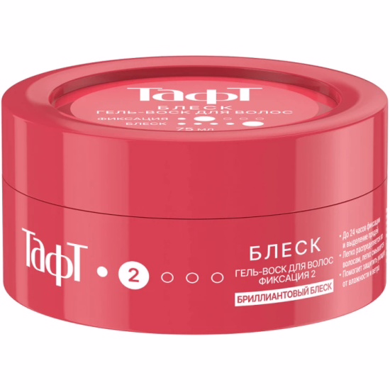 Гель-воск для укладки волос ТАФТ "Блеск Фиксация 2". Эффект ламинирования – до 100% больше блеска, как сияние бриллиантов.