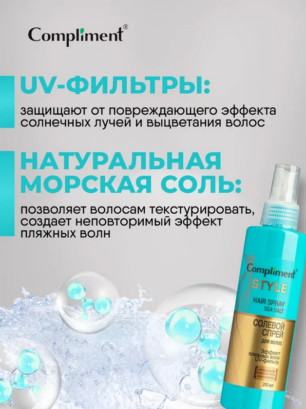 Спрей для укладки волос "Солевой. Эффект пляжных волн" (200 мл)
