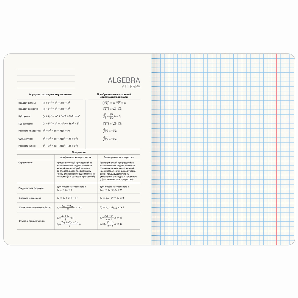 В комплекте 12 тетрадей: Алгебра, Английский язык, Биология, География, Геометрия, Обществознание, История, Информатика, Литература (в линию), Русский язык (в линию), Физика, Химия.