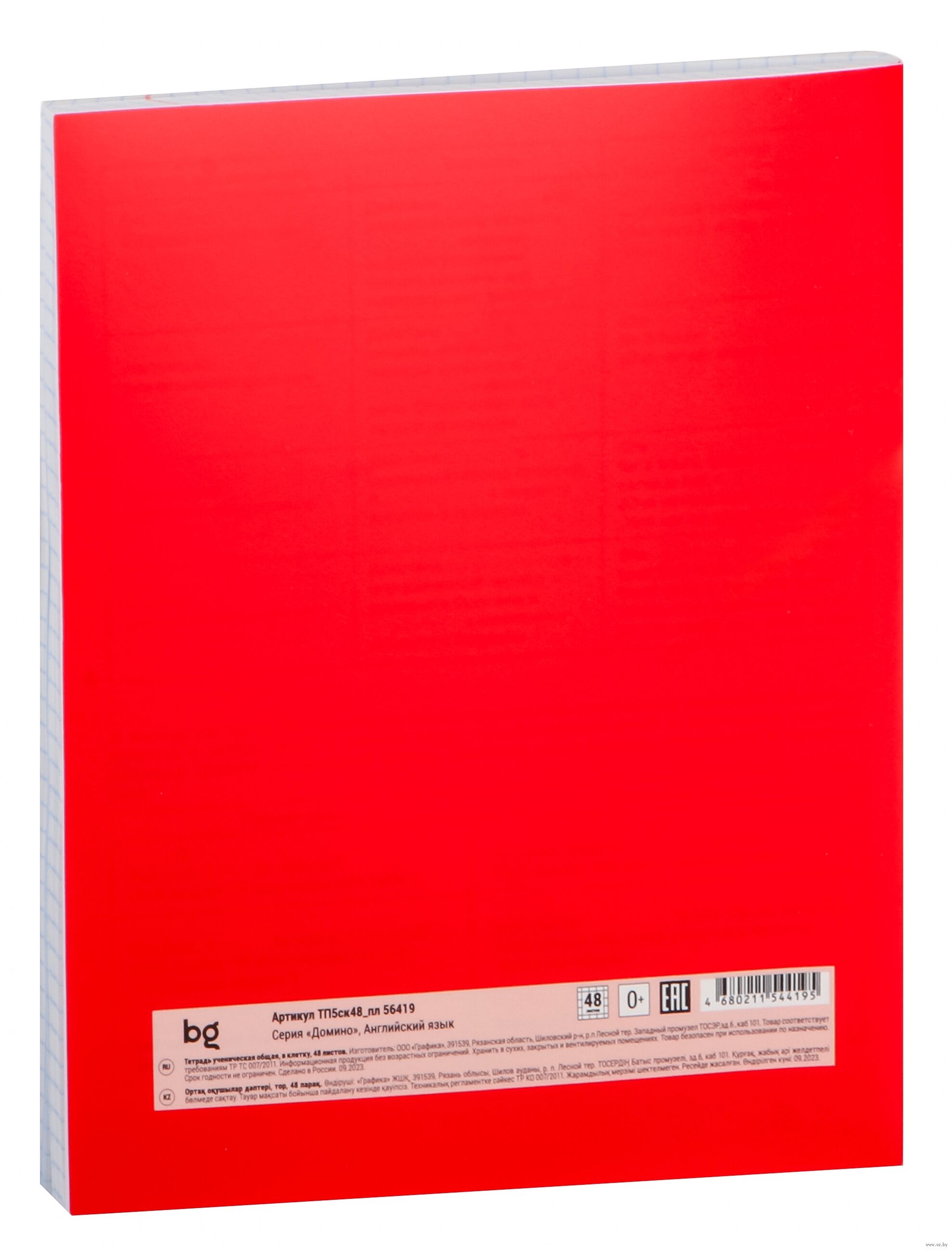 Формат тетради – А5, вид крепления – скрепка. Внутренний блок состоит из 48 листов офсетной бумаги плотностью 60 г/м2 и белизной блока 100%. Тип линовки – клетка с полями. Обложка выполнена из пластика.
