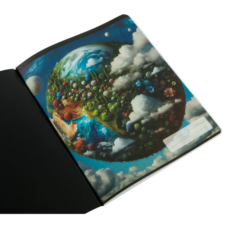 Обложка изготовлена из мелованного картона, который защищает страницы от повреждений. В отделке используется выборочный лак. Благодаря soft-touch ламинации тетрадь приятна на ощупь.