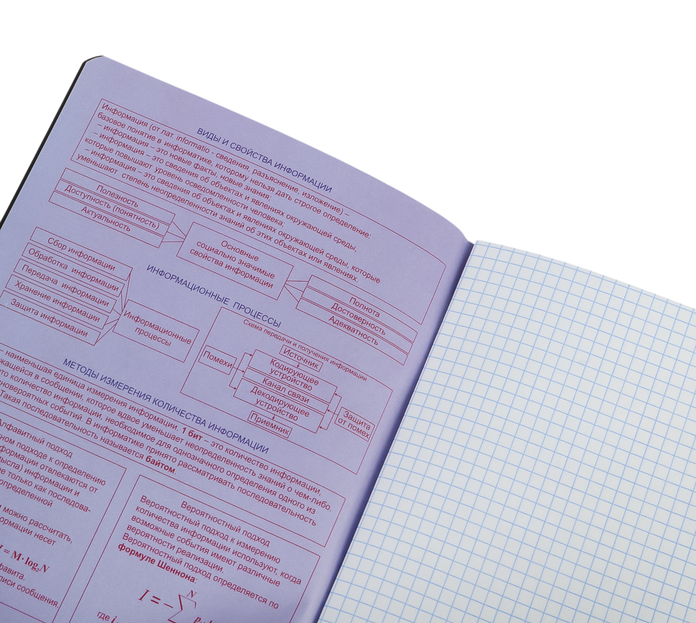 Благодаря справочной информации на подкладных листах важные факты всегда будут под рукой. Компактный формат А5 позволяет носить тетрадь в папке, рюкзаке или шопере.