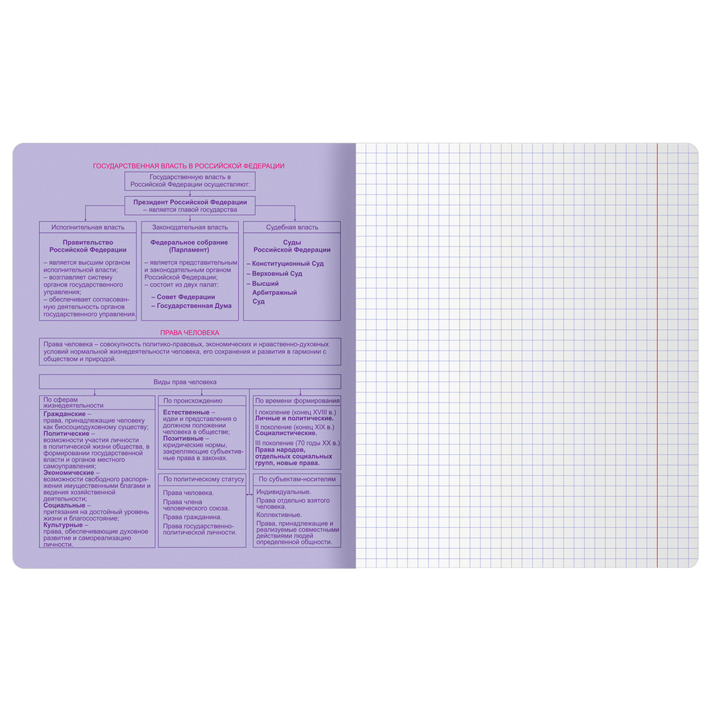 Благодаря справочной информации на подкладных листах важные факты всегда будут под рукой. Компактный формат А5 позволяет носить тетрадь в папке, рюкзаке или шопере.
