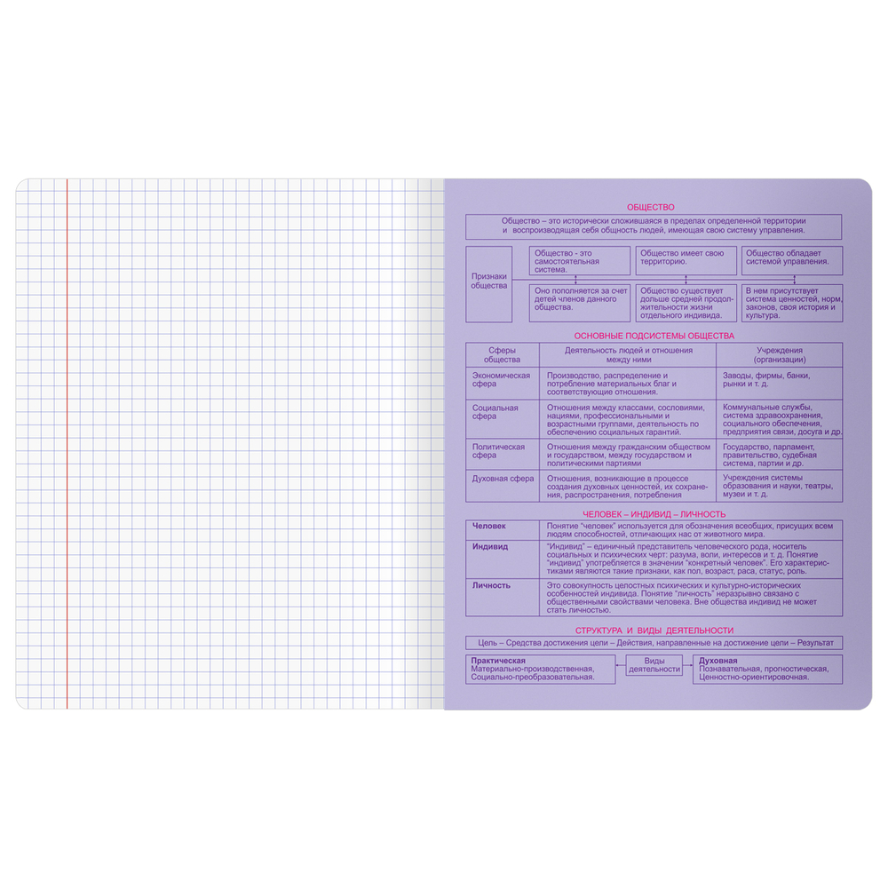 Предметная тетрадь "Обществознание" серии "Информационное поле" – отличный выбор для учёбы. Внутренний блок включает 48 листов офсетной бумаги плотностью 60 г/м². Тип линовки – клетка с полями.