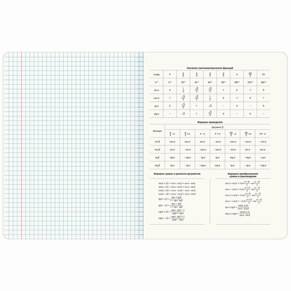 Тетради содержат 48 листов, изготовленных из высококачественной офсетной бумаги плотностью 60 г/м2 и 100% белизны, с красными полями. Листы соединены скобами. Обложка изготовлена из мелованного картона. В справочном материале собраны основные подсказки по школьному предмету.