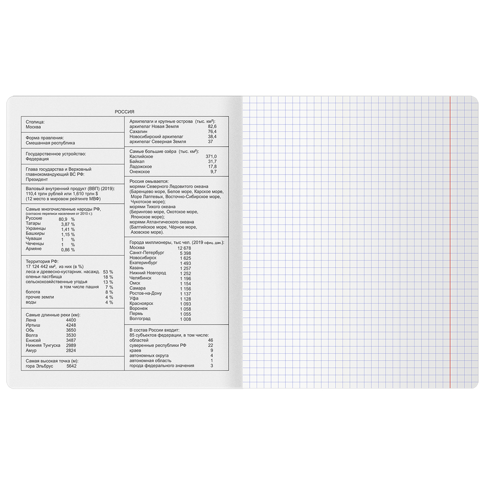 В тетради используется офсетная бумага плотностью 60 г/кв.м. Белизна блока – 100 %.