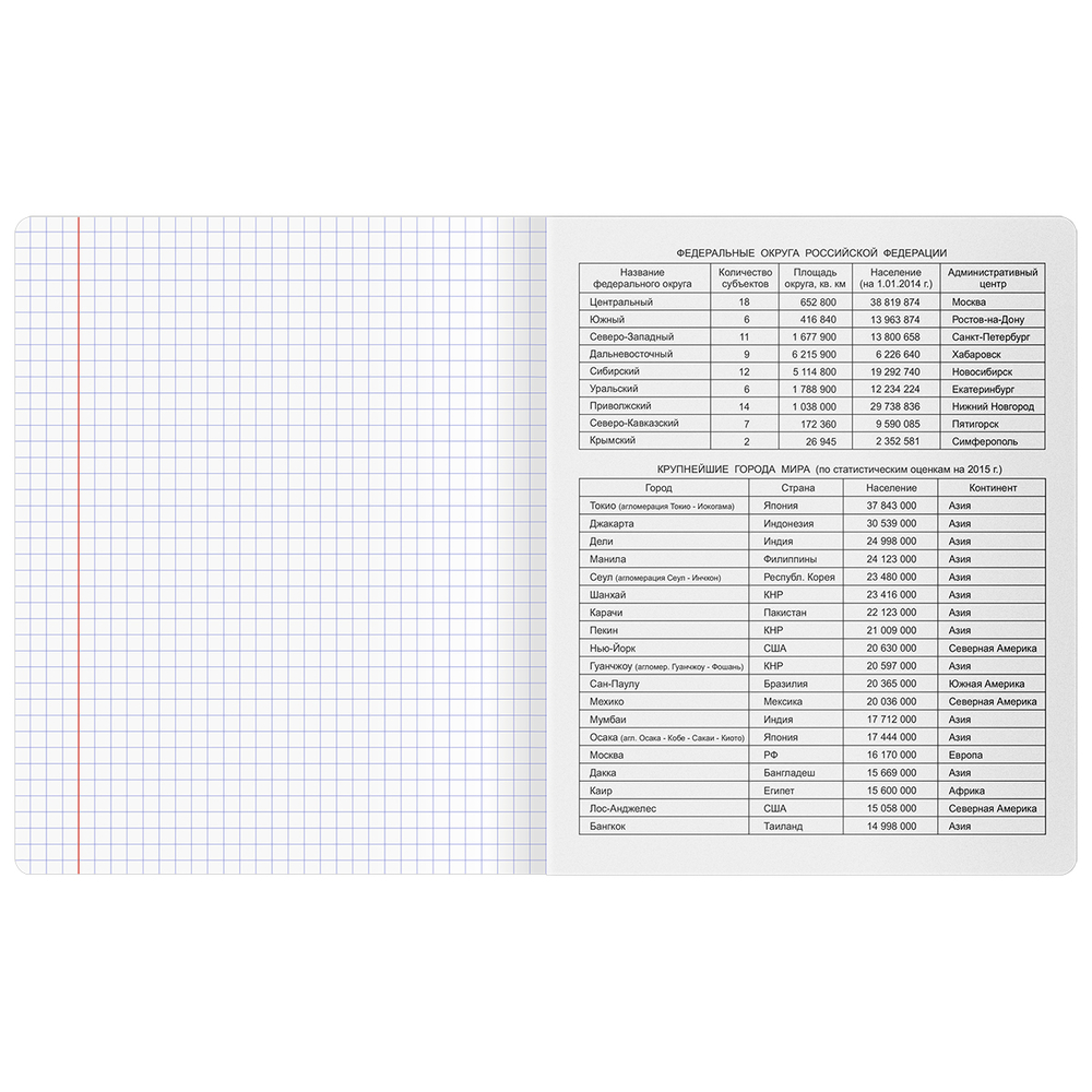 Предметная тетрадь BG "География" со справочной информацией на форзаце и обороте понадобится ученикам 7 класса и старше.