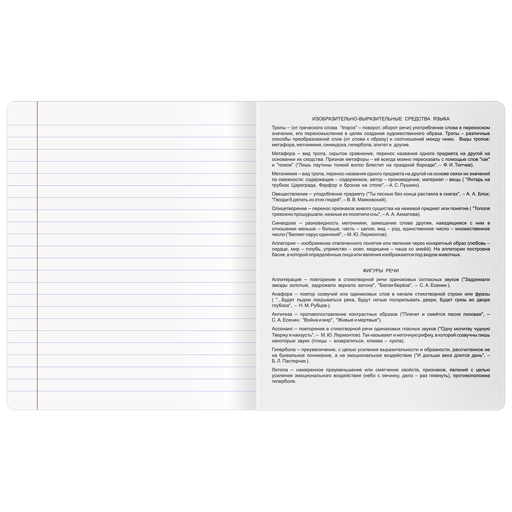 В тетради используется офсетная бумага плотностью 60 г/кв.м. Белизна блока – 100 %.