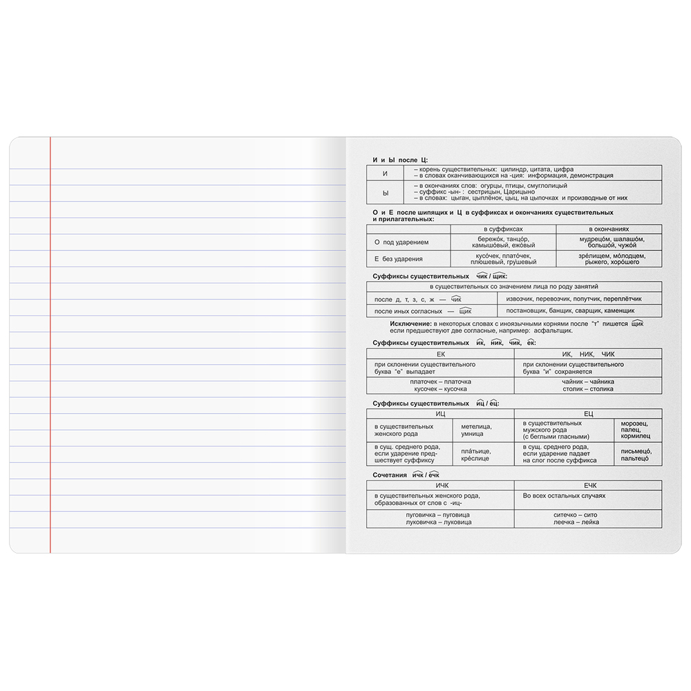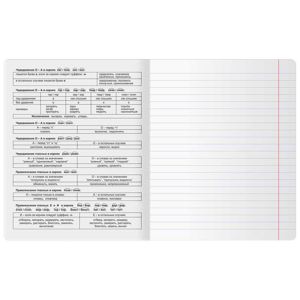 Предметная тетрадь BG "Русский язык" со справочной информацией на форзаце и обороте понадобится ученикам 7 класса и старше.
