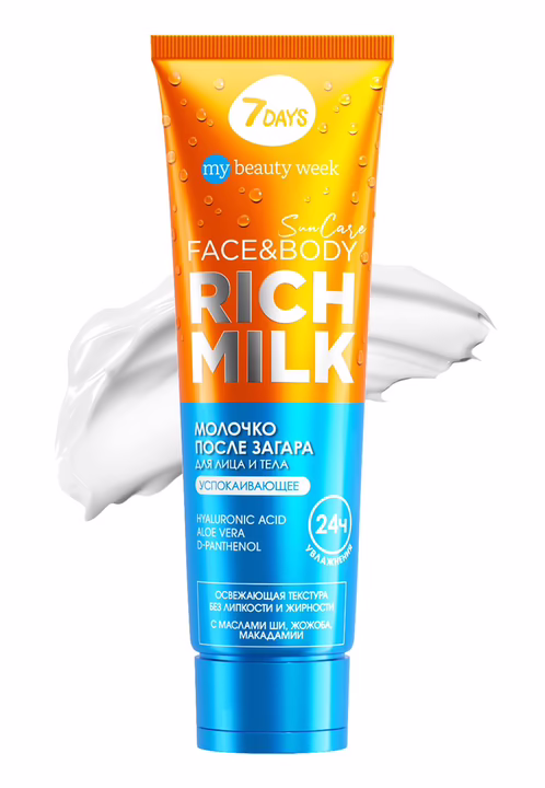 После пребывания на солнце ополосни кожу теплой водой, чтобы удалить остатки солнцезащитного крема, морскую соль, хлор. Деликатно распредели молочко после загара по чистой сухой коже.Состав