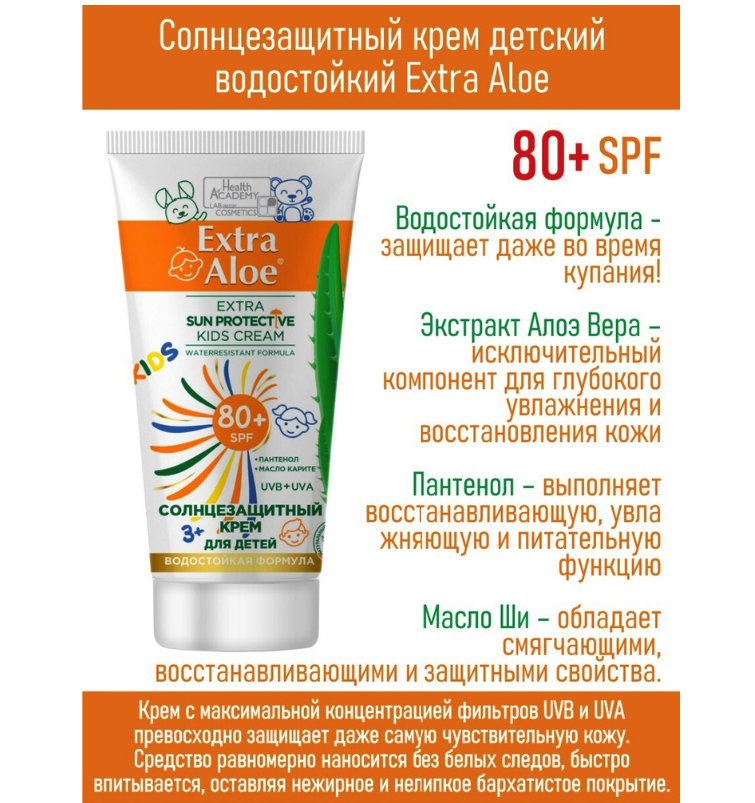 Крем с максимальной концентрацией фильтров UVB и UVA превосходно защищает даже самую чувствительную детскую кожу. Водостойкая формула защищает даже во время купания.