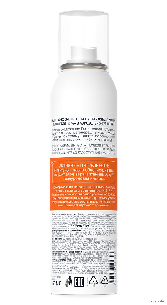 Перед использованием необходимо тщательно встряхнуть баллон в течение 3-5 секунд. Распылить содержимое баллона с расстояния 10-20 см на кожу. При первом использовании аэрозольной упаковки первую порцию средства распылить на неповрежденную кожу. Только для наружного применения.Состав