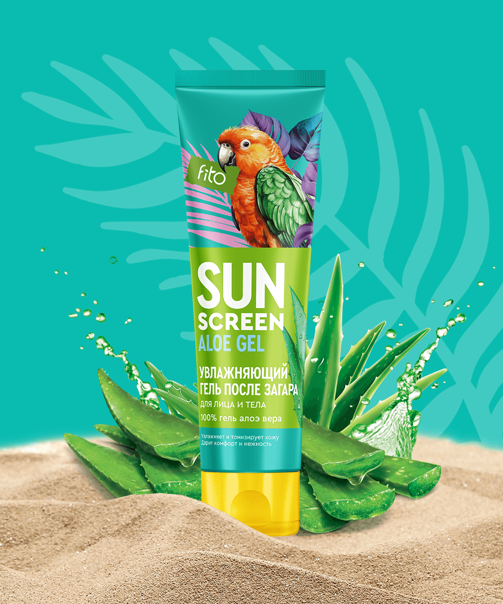 100% натуральный гель алоэ оказывает превосходное успокаивающее и увлажняющее действие, способствует быстрому восстановлению кожи после долгого пребывания на солнце.