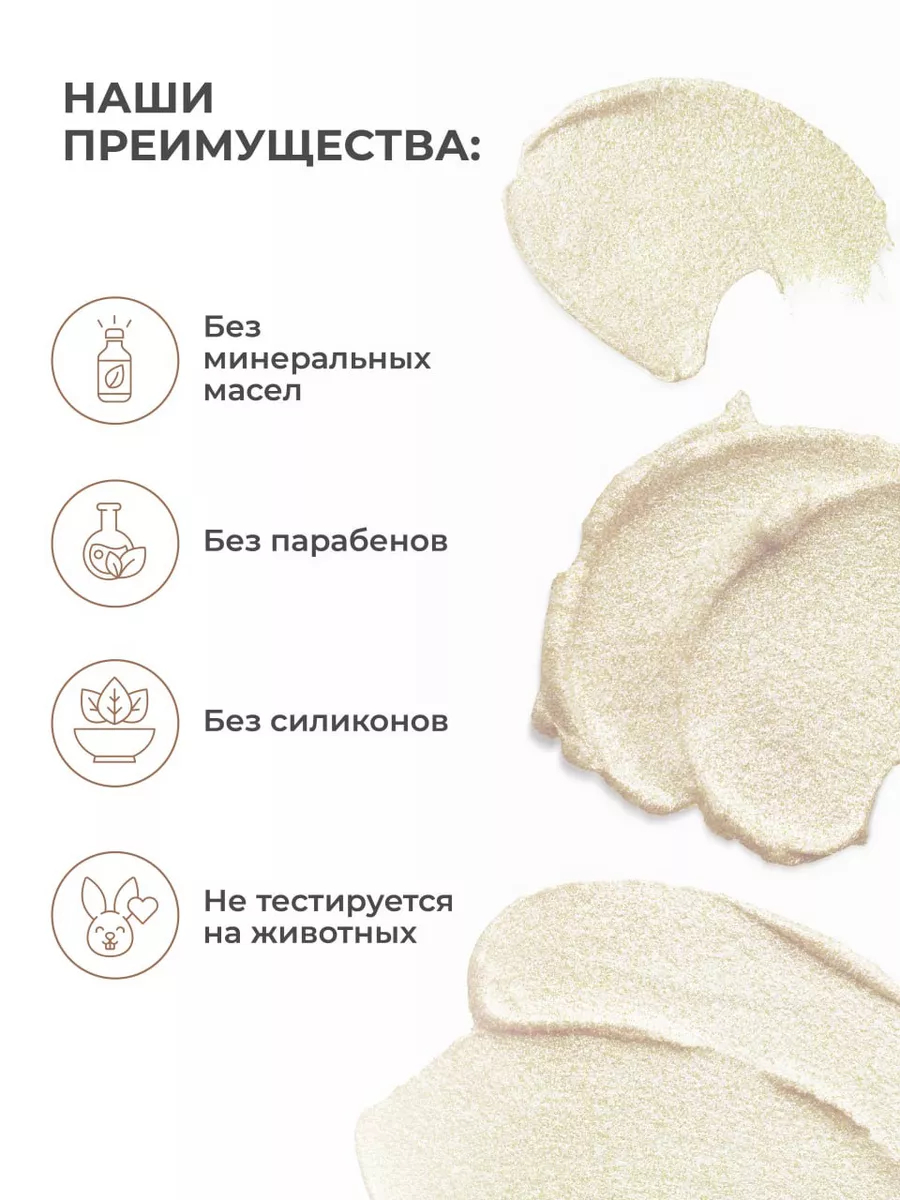 Кожа будто поцелована солнцем! Серебристые минеральные пигменты сливаются с вашим естественным тоном кожи, позволяя получить совершенную кожу в любое время года.