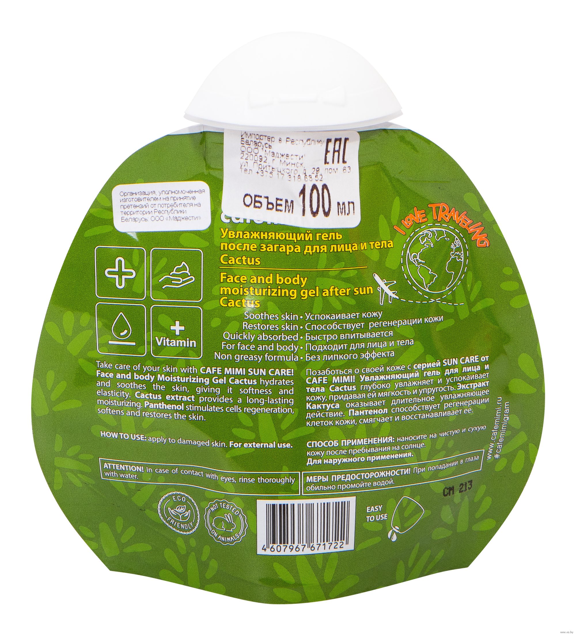 Увлажняющий гель для лица и тела "Cactus" глубоко увлажняет и успокаивает кожу, придавая ей мягкость и упругость. Экстракт кактуса оказывает длительное увлажняющее действие. Пантенол способствует регенерации клеток кожи, смягчает и восстанавливает ее.