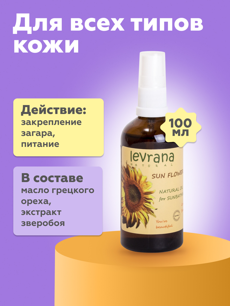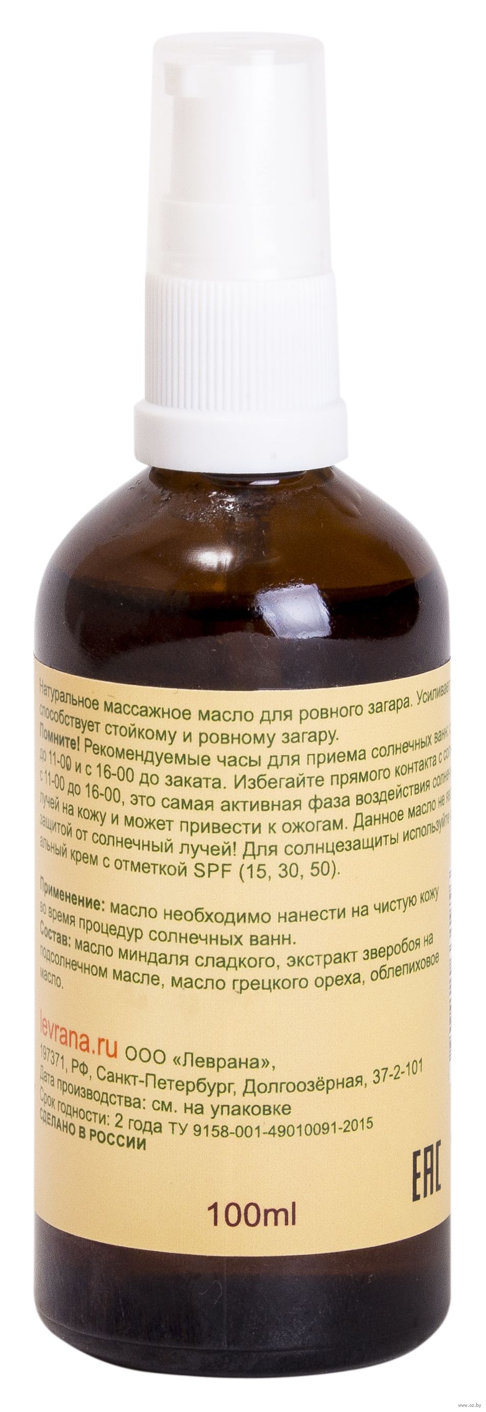Масло необходимо нанести на чистую кожу во время процедур солнечных ванн.Состав