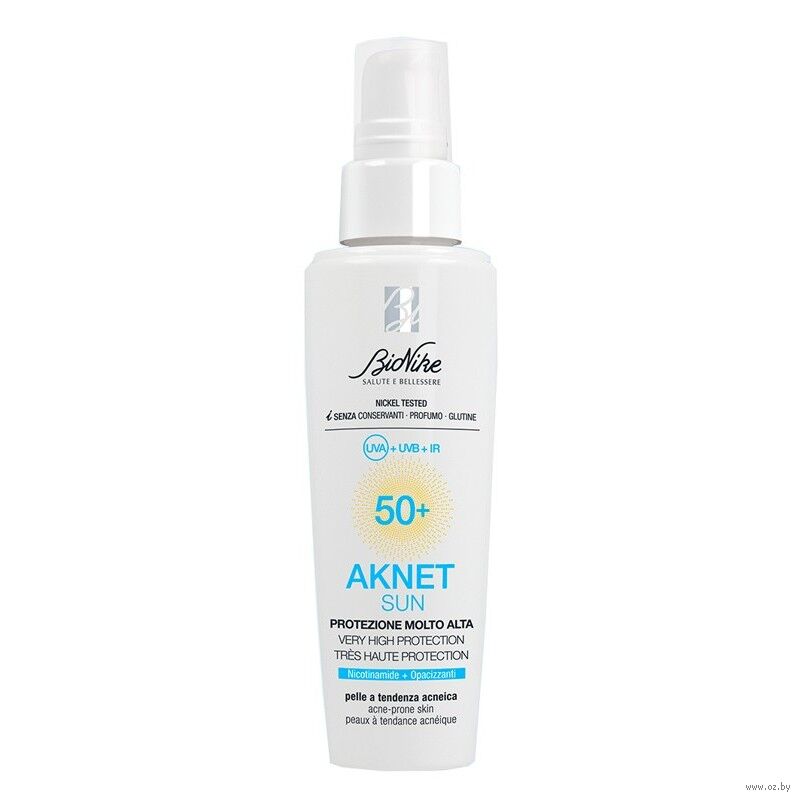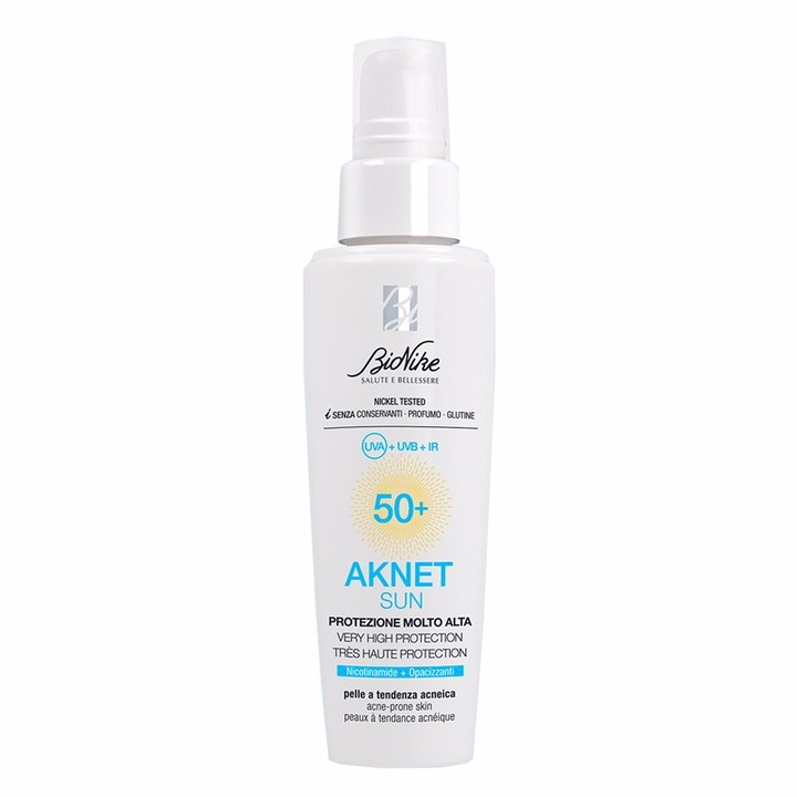 Aknet Sun 50+ Very High Protection – это крем для специальной фотозащиты кожи, склонной к акне. Созданный с использованием технологии Network Expert, которая оптимизирует эффективность системы фильтрации UVA-UVB, он также защищает от свободных радикалов, генерируемых инфракрасными и ультрафиолетовыми лучами.